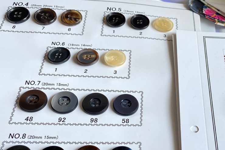 種類豊富なボタンや裏地よりお客様のお好きなものをお選びいただきます。